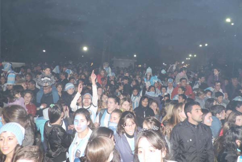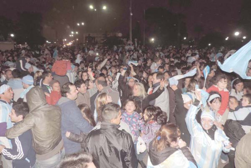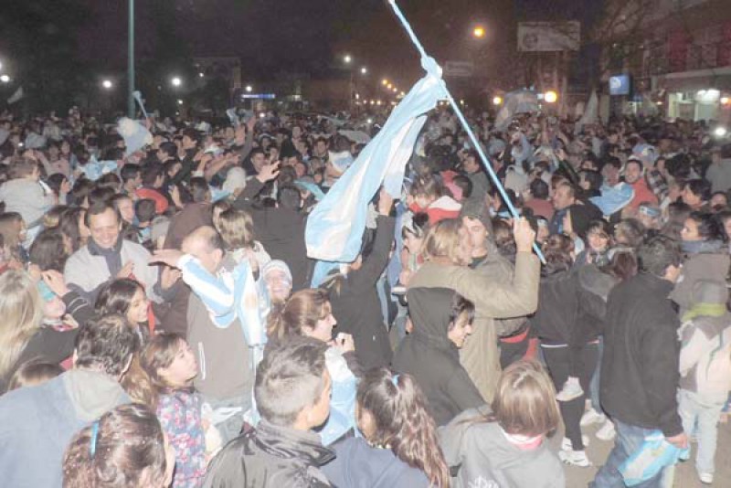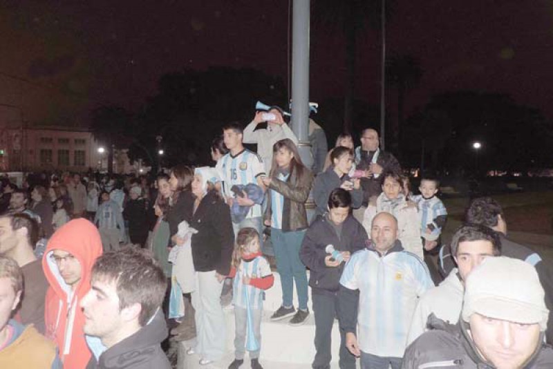 Cientos de nuevejulienses tras gritar desaforadamente frente a la imagen del penal convertido por Maxi “la Fiera” Rodríguez, las lágrimas de emoción por volver a jugar una final mundialista, se volcaron a la calle camino a la Plaza Belgrano donde como es habitual se centraron los festejos.