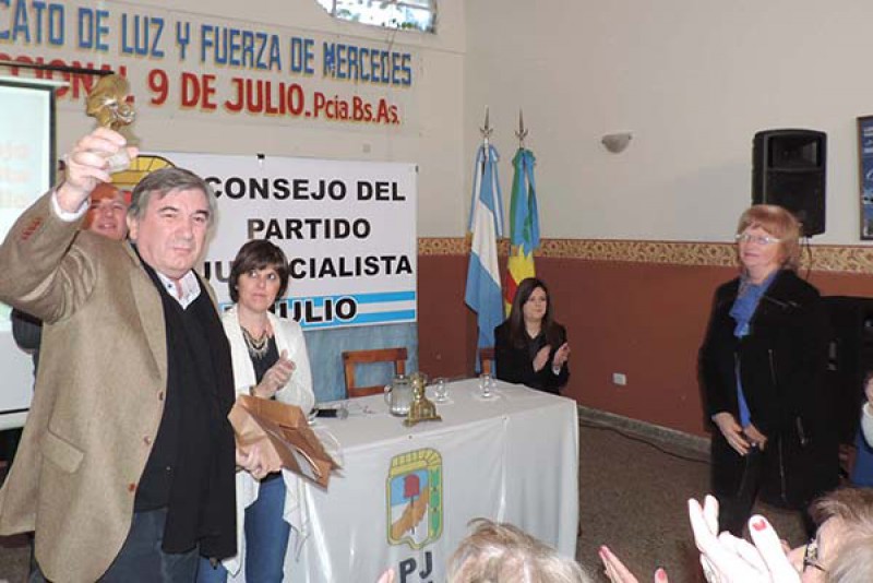 Gagliano resaltó “tenemos una historia de lucha. Venimos trabajando en la unidad del peronismo local. En los últimos diez años se fue dispersando, se fueron formando distintas agrupaciones, y no es fácil, venimos bregando por la unidad del Partido, con encuentro con distintos compañeros, debatiendo, charlando, se van acercando y comprendiendo que como dice nuestra marcha peronista ‘unidos triunfaremos’. Esta estatuilla tiene una historia de lucha. Fue donada por la familia Caruso, en ocasión de la Revolución Libertadora en momentos en que se invade el despacho del Intendente, Caruso la saca, la salva y la dona al Partido. Acá se ve la lucha del ‘Rubio’ Callegaro, de Martín. Como este libro que fue salvado por la familia Mignes. A esa lucha de esos viejos peronistas tenemos que pagarle la deuda y para pagarla tenemos que ganar el municipio y para eso tenemos que estar unidos”.