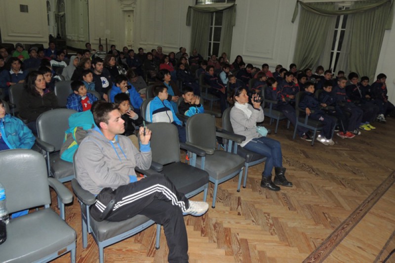En el marco de las actividades que acompañaron el desarrollo de la “2da. Copa Sanmartiniana” de Fútbol Infantil, llevada adelante por el Club Atlético San Martín, tras la charla que ofreciera el pasado viernes en el Salón Blanco del Palacio Municipal el Prof. Justo Aón, nuevejuliense de destacada trayectoria como entrenador de fútbol en importantes equipos de nuestro país y el exterior; se procedió a efectuar la entrega de un decreto que distingue su trayectoria.