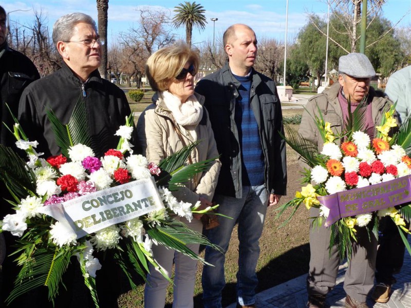 Comenzó con la colocación de ofrenda floral al pie del busto de EVITA por parte del Intendente Municipal de General Viamonte, Dr. Javier Mignaquy acompañado por su equipo de gobierno y por parte del Presidente del Honorable Concejo Deliberante de General Viamonte, Don Juan Manuel Galo acompañado por los Sres. Concejales.