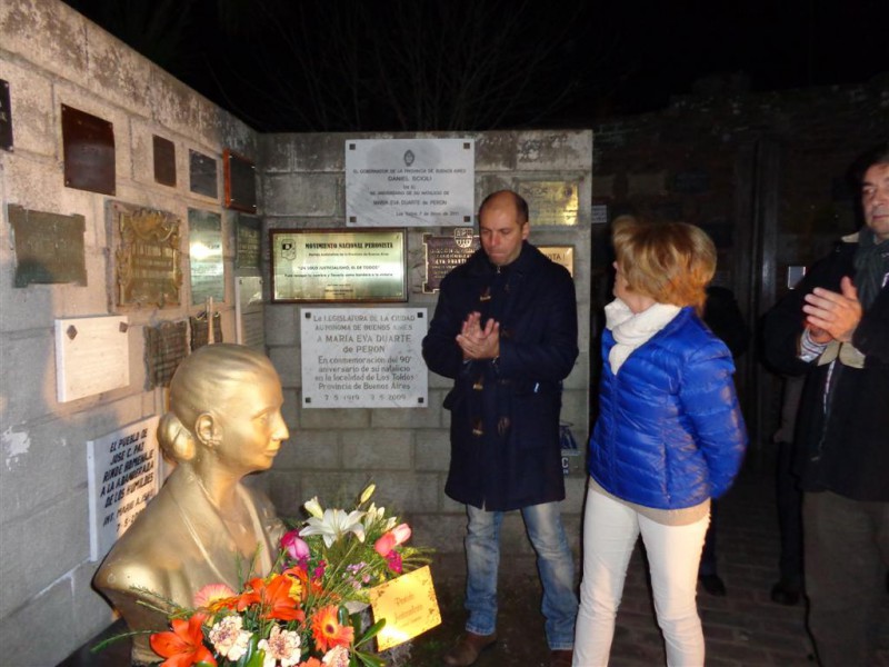 Porque no recordarla bajo el cobijo de estas paredes, y los aires de este hermoso pueblo, como lo que ella eligió ser, simplemente Evita, la abanderada de los humildes”…