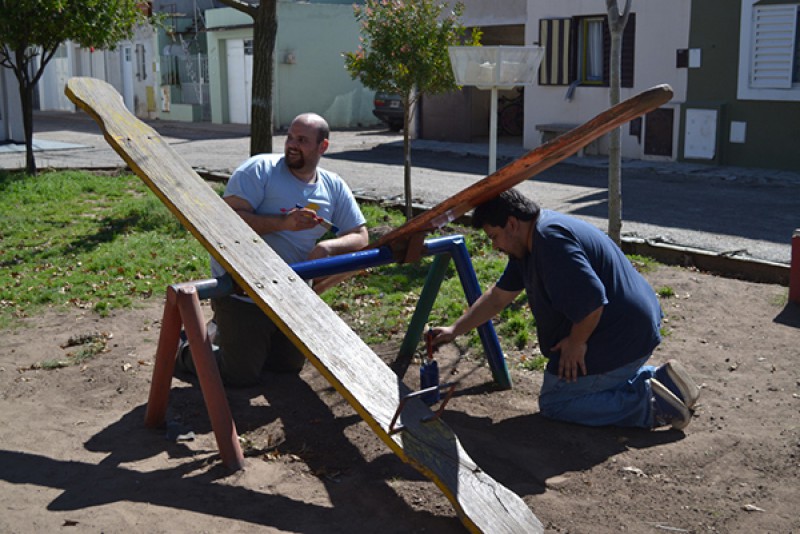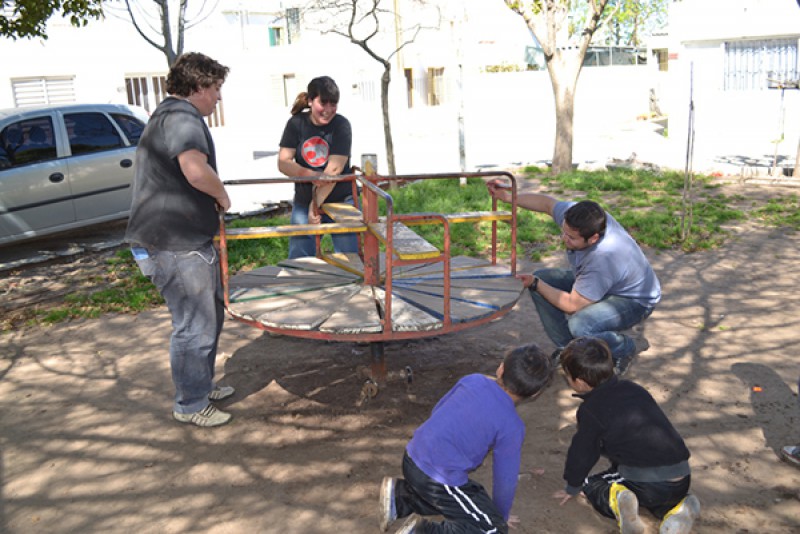 Durante la jornada se realizaron tareas de pintura y mantenimiento de los juegos de la plazoleta Ángel Calixto Gornatti, a la cual concurren muchos jóvenes y niños de esta barriada.