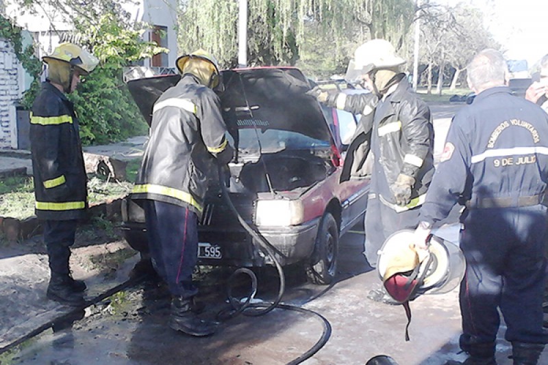 Siendo aproximadamente las 08,30 hs de ayer, desde las inmediaciones de calles Salta y Agustín Alvarez, fue requerida la presencia de los Bomberos Voluntarios de 9 de Julio, en virtud de haberse originado el incendio de un vehículo, un Fiat Duna Weekend, que sufrió daños de consideración en su motor y parte del habitáculo.