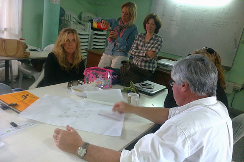 Circulan las ideas, los presupuestos y, entre mate y mate los planos en borrador comienzan a dar forma a un sólo plano de parquización grupal.