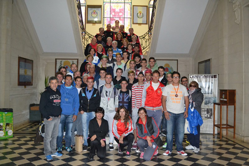 El jefe comunal, acompañado de funcionarios de su Gabinete recibió a los finalistas y al ganador de la medalla de Bronce en lanzamiento de Bala, el joven quirogense Ignacio Graciano.