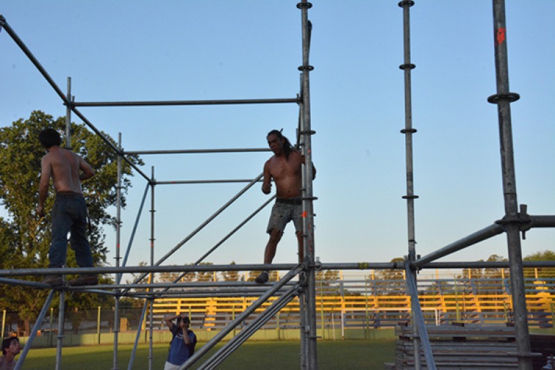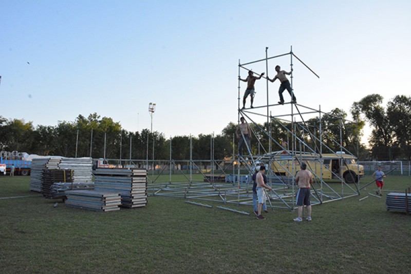 Con la organización de “FM Vale”, se continúa avanzando en la programación de la presentación en nuestra ciudad del dúo “Pimpinela”, que se habrá de presentar mañana, sábado 25 de octubre, desde las 22 hs., en el estadio “Abel Del Fabro”, del Club Atlético Once Tigres, donde como muestran las tomas gráficas, se trabajaba ayer por la tarde en el armado del escenario.