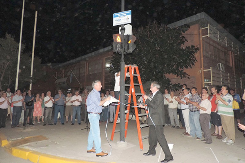 En este marco, fueron instalados los semáforos en todo el margen de Plaza Gral. Belgrano y en la intersección de calle Tucumán y avenida Tomás Cosentino (frente a la Escuela Técnica y por un convenio que incluye también a la CEyS Mariano Moreno) donde además se instalaron semáforos con señalización para peatón, un contador de tiempo y un sistema conmutador electrónico que comanda toda la señalización de la esquina, los que fueron inaugurados en la noche de ayer, en el marco de un acto del que participaron el Intendente Municipal, Dr. Walter Battistella, funcionarios de su Gabinete, autoridades, docentes y alumnos del establecimiento educativo, representantes de la Cooperativa “Mariano Moreno” y vecinos de la barriada.