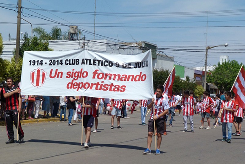 Lo hizo participando en el desfile con más de 600 deportistas polijamente uniformados, que estaban representando a 11 disciplinas deportivas, con sus respectivos Profesores y acompañantes. Lo que distinguió a la columna del Club, en realidad, fue la cantidad de banderas roji blancas y carteles que le daban un colorido especial, distinguiéndose nítidamente de las demás formaciones.