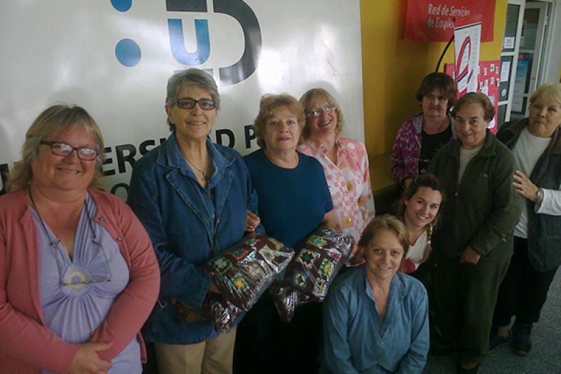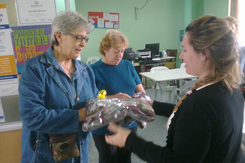 Efectivamente, durante el receso de invierno de este ciclo, ambos grupos de la Escuela de Tejido aplicaron lo aprendido interviniendo las mantas y transformándolas en dos pies de cama que fueron entregados al Hogar de Ancianos, completando el circuito solidario que naciera en el corazón de la vecina.