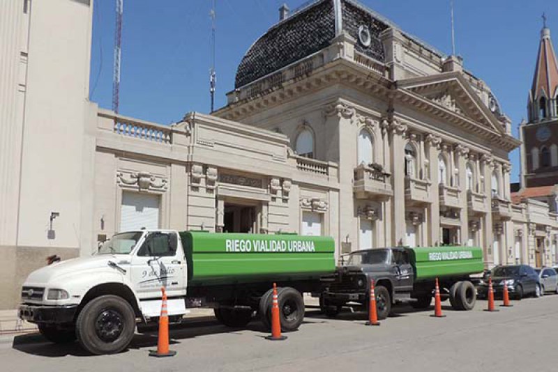El Intendente Municipal de 9 de Julio, Dr. Walter Battistella, acompañado por funcionarios de su Gabinete, procedió en horas de la mañana de ayer a presentar ante la comunidad y sobre el frente del Palacio Municipal dos tanques cisternas de riego de 2.000 litros que se pondrán a disposición de las diferentes barriadas de la planta urbana.