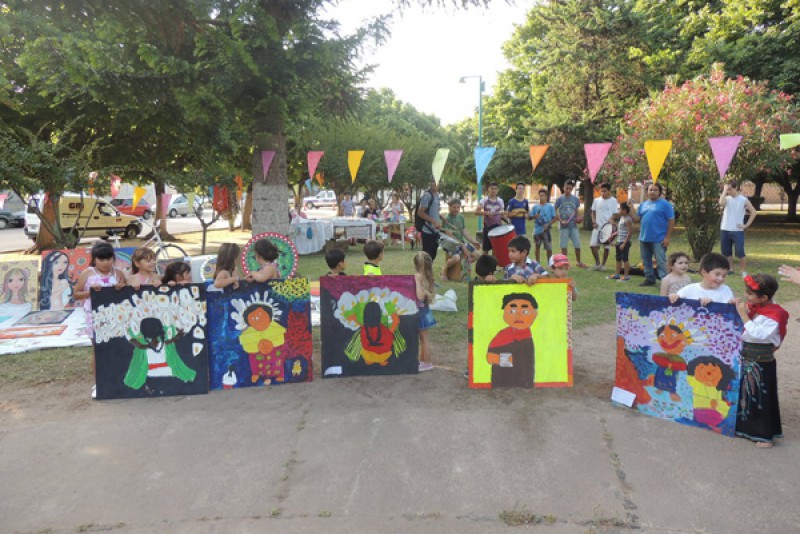 Posteriormente en la plaza donde se armaron diferentes puestos de artistas que mostraron una variada propuesta artesanal, hubo además demostraciones de los chiquitos del Jardín de Infantes Nº 905, bazucada y canto.