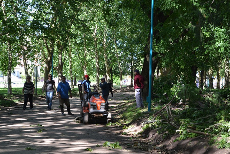 En primera instancia se recorrió el Parque Gral. San Martín, donde el municipio puso en marcha un operativo de limpieza de los caminos internos para la libre circulación; se extrajeron ramas y gajos caídos de gran tamaño; en tanto que también se efectuó el mantenimiento del Paseo “La Trocha” y las de las distintas plazas y espacios verdes de la ciudad.