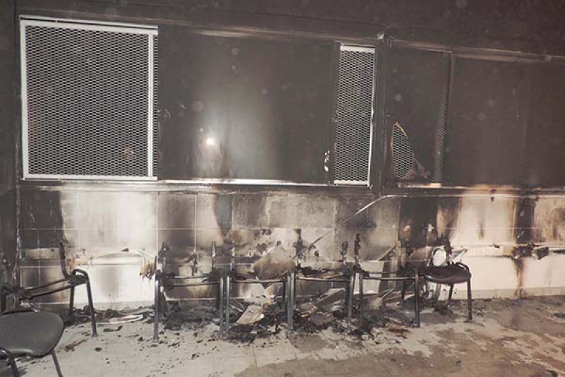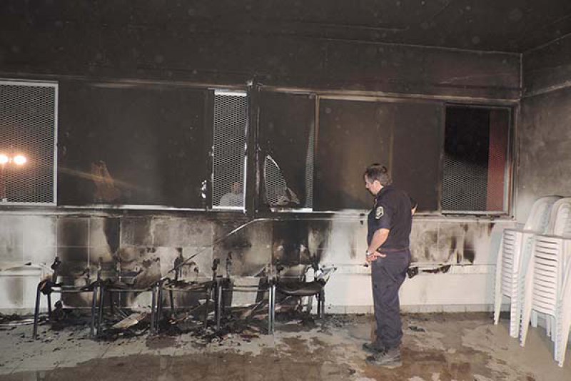 Constituido personal policial juntamente con el de Bomberos Voluntarios local, se constata un foco ígneo en el interior del aula de computación que da a la calle Mariano Moreno, el que posteriormente fue sofocado por Bomberos.