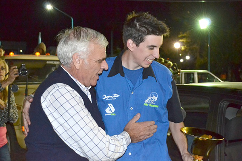 El joven deportista arribó a nuestra ciudad en la noche de ayer rodeado de familiares y amigos, y fue recibido por el Intendente Municipal, Dr. Walter Battistella, en la puerta del Palacio comunal.