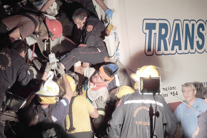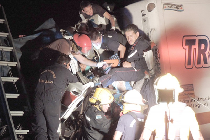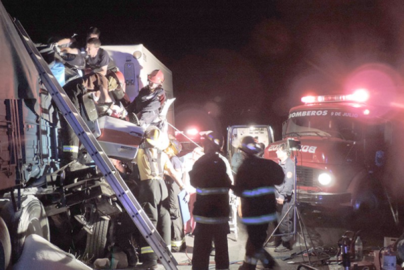 Cabe destacar por otra parte que el conductor herido debió ser rescatado de entre los hierros de la cabina de su transporte por los Bomberos Voluntarios de 9 de Julio, quienes desarrollaron una loable e intensa labor, que se prolongó por espacio de dos horas.