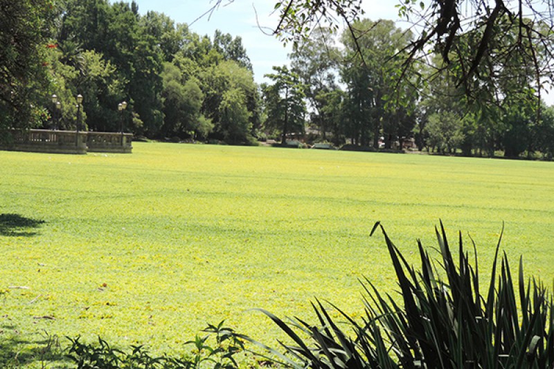El Director General de Espacios Verdes de la Municipalidad de 9 de Julio, Jorge Rumi, junto al subsecretario de Urbanismo, Arq. Walter Fons, anunciaron  ayer ante los medios de prensa importantes novedades en torno a las obras previstas por el Gobierno Municipal para sanear la situación del espejo de agua del Parque General San Martín, que como es de dominio público se ha visto cubierto en su totalidad por especies vegetales.