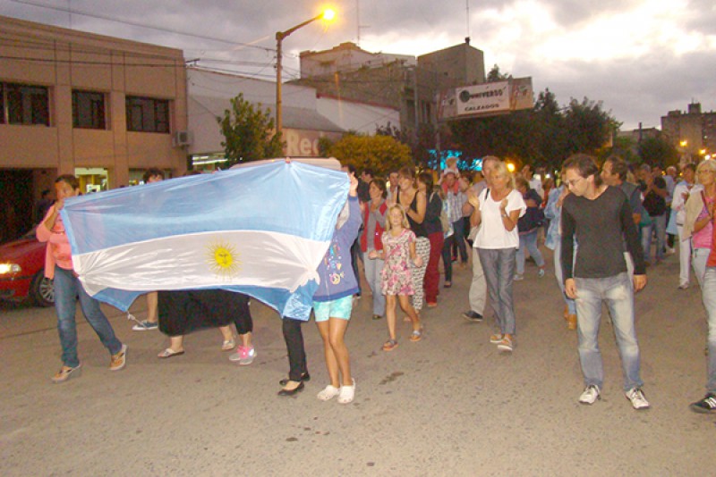 Un centenar de vecinos de nuestro medio se concentró en Plaza Belgrano, recorriendo su perímetro, para luego dirigirse en el mástil central, donde entonaron las estrofas del Himno Nacional Argentino y pidieron Justicia.