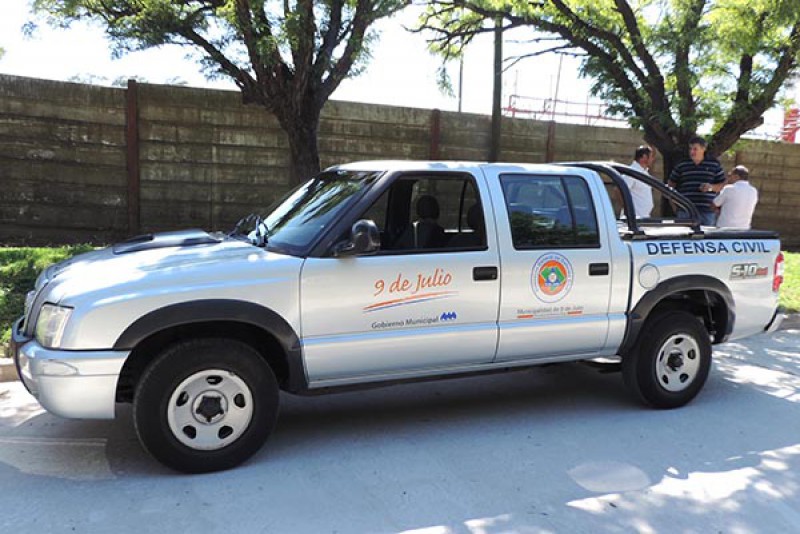 En oportunidad de la inauguración de obras de pavimento desarrollada ayer en la intersección de calles Granada y La Rioja, el Intendente Municipal de 9 de Julio, Dr. Walter Battistella –acompañado por funcionarios de su Gabinete-, procedió a presentar un nuevo vehículo adquirido por el municipio para el área de Defensa Civil –una pick up Chevrolet S 10 doble cabina, doble tracción y modelo 2010-, para su tarea en esta cartera municipal.