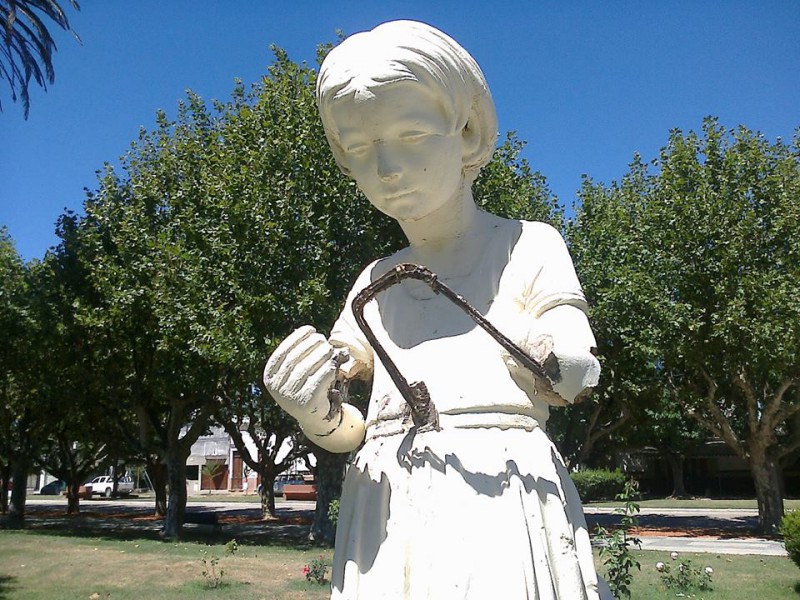 Alrededor de las 05:00 horas de la mañana, se toma conocimiento que dos sujetos instantes antes habrían provocado daños en reflectores, banco y estatua ubicados en plaza Bernardino Rivadavia de este medio.