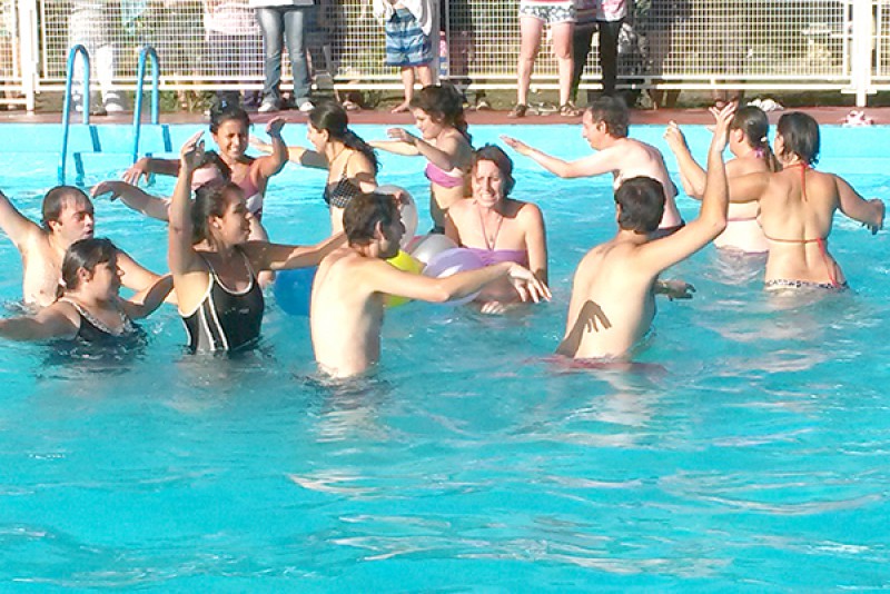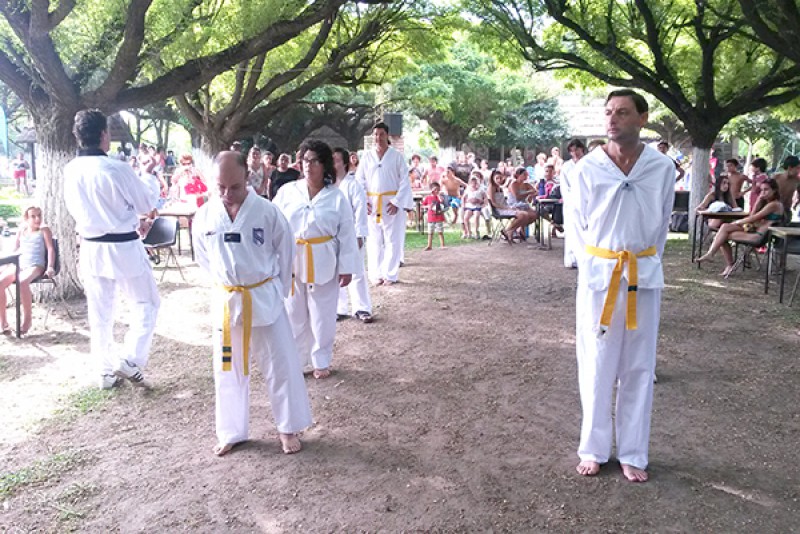 Se realizó una colorida coreografía en el agua con suelta de globos, una exhibición de taekwondo y demás propuestas del club.