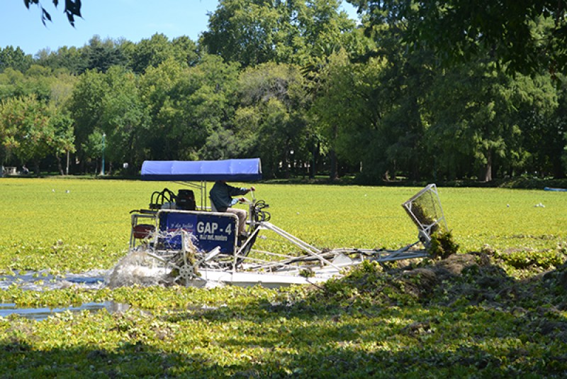 Como puede apreciarse en las tomas gráficas, el funcionamiento de esta última unidad es normal luego de haberse subsanado un inconveniente menor en la misma; procediéndose a la extracción de las plantas acuáticas hacia la orilla, desde donde son retiradas por la retroexcavadoras y depositadas en un camión. Se recomienda a la comunidad que ante estas tareas se circule con precaución en el paseo público.