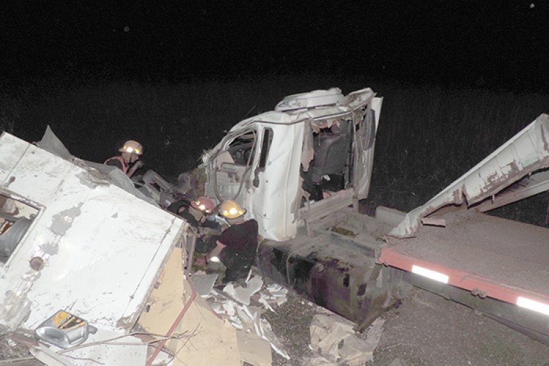 Esta madrugada en ruta 65 a la altura del Arreo Club 9 de Julio, a las 4:30 hs. dos camiones chocaron y como consecuencia arrojo el saldo de uno de los chóferes, fallecido.