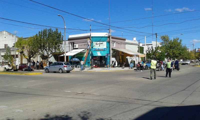 Actuó en el lugar personal de la Municipalidad de 9 de Julio para restablecer el servicio del semáforo junto a inspectores de transito y personal de la empresa de emergencias médicas Clysa en el traslado del motociclista.
