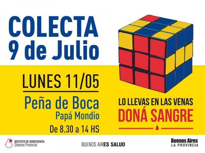 Desde las 8 y hasta las 14hs. de ayer se desarrolló en el local de Papá Mondio, ubicado en Av. Mitre entre Santa Fe y Corrientes, una colecta de sangre organizada por la Peña “Antonio Roma”, del Club Atlético Boca Junior se de 9 de Julio y coordinada por el Servicio de Hemoterapia del Hospital Julio de Vedia.