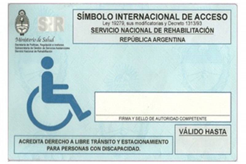 Es un documento que identifica/individualiza cualquier vehículo en el que se traslade una persona con discapacidad, y le otorga el derecho al libre tránsito y estacionamiento (derecho regulado por las normas de tránsito de cada localidad o municipio).