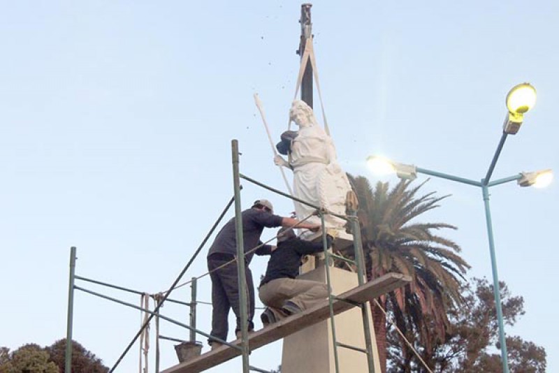Cabe destacar que para la colocación de la imagen se contó con la colaboración de la Cooperativa Eléctrica y de Servicios “Mariano Moreno”, que proveyó la pluma para poder elevarla.