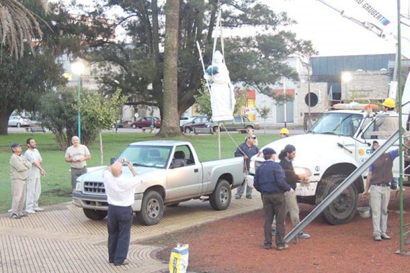 En el preciso instante de la colocación, Tabbita explicó que la escultura está realizada con cemento armado.