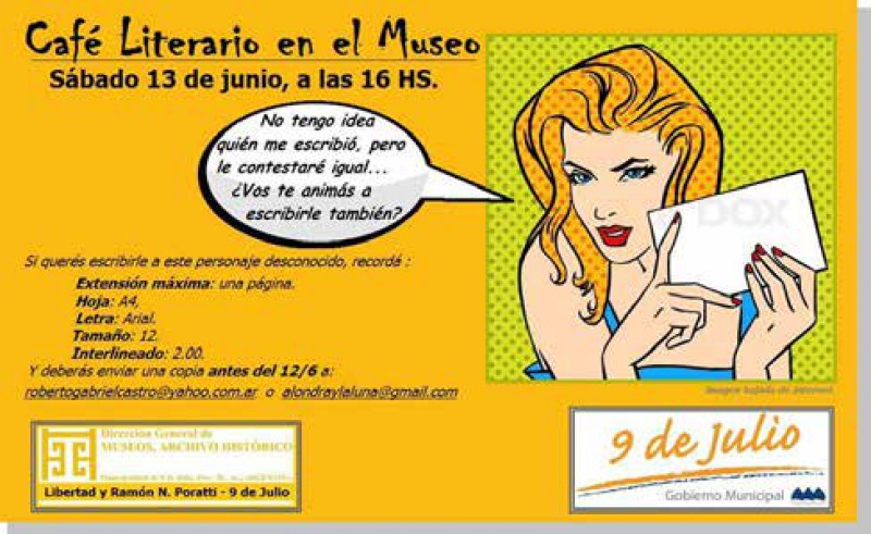 La entrega de las producciones deberá efectuarse en el Museo hasta el venidero viernes 12, de 8 a 12 hs. o por mail a [email protected] o [email protected]