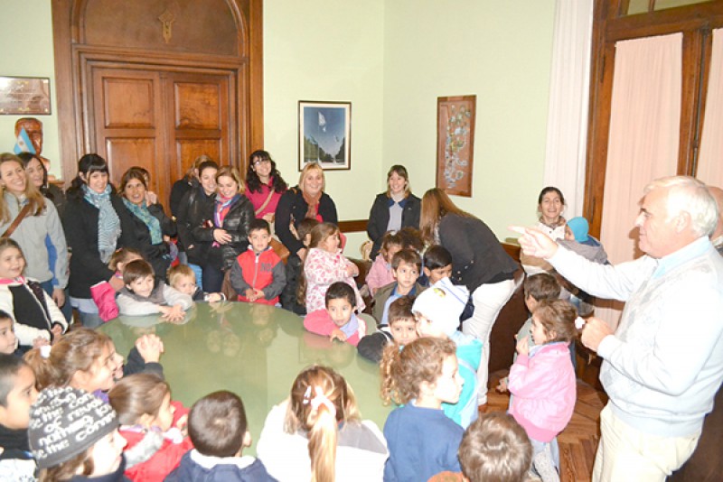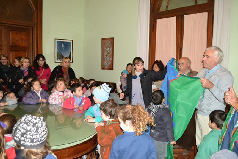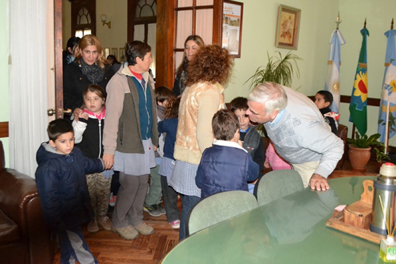 En la mañana de ayer, en su despacho, el Intendente Municipal de 9 de Julio, Dr. Walter Battistella, recibió la visita de alumnos de las dos salas de 5 años del Jardín de Infantes Nº913, acompañador por las docentes Claudia Olivera y Elsa Regazzoni y el director del Museo y Archivos Histórico “Julio de Vedia”, Roberto Castro, quien coordinó la misma en el marco del proyecto “Museo a las Escuelas”.