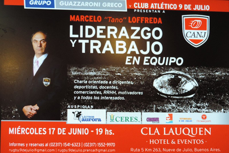 En conferencia de prensa ofrecida en la noche del pasado lunes, el presidente del Club Atlético 9 de Julio, Federico Raineri; acompañado por Diego Baztarrica, integrante de la Sub Comisión de Rugby de la institución millonaria, brindaron detalles de la disertación que el ex rugbier de San Isidro Club (SIC) ex Puma y ex entrenador del seleccionado nacional de este deporte, Marcelo “Tano” Loffreda, brindará en nuestra ciudad, hoy miércoles, a las 19 hs. en el Hotel Cla Lauquen