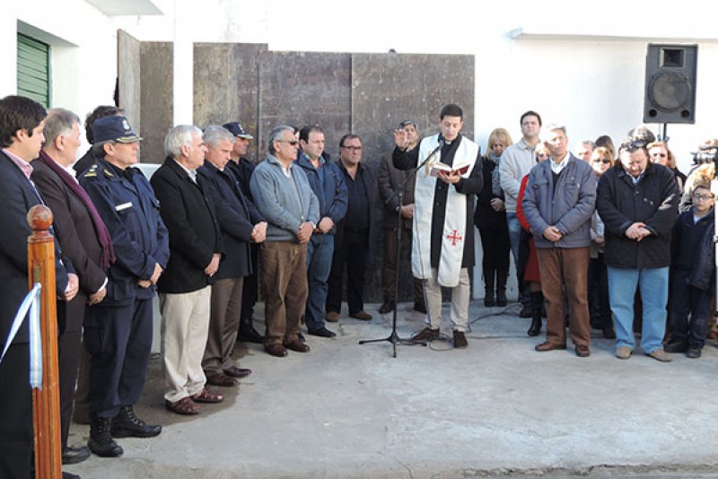 Tras la presentación del acto, y la entonación de las estrofas del Himno Nacional Argentino, interpretadas por la Agrupación Sinfónica de la Policía de la Provincia de Buenos Aires el padre Facundo Echaniz procedió a efectuar la bendición de las instalaciones.