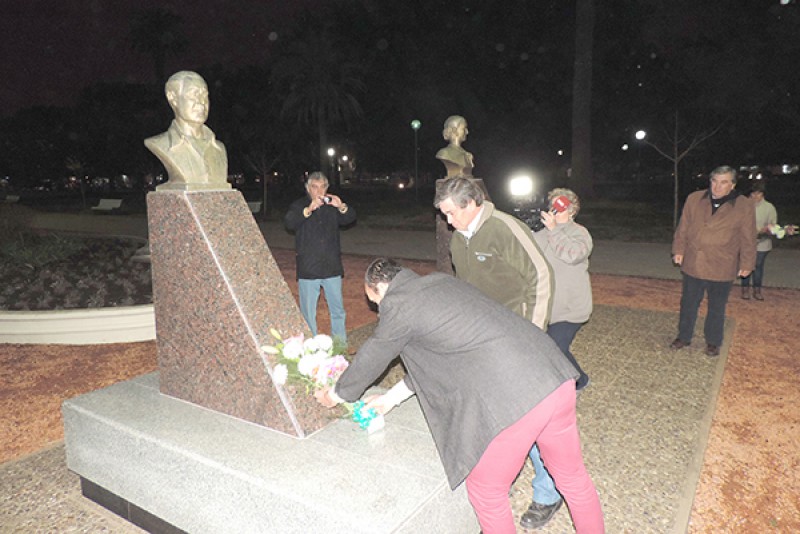 Los actos comenzaron a las 19 hs., con una celebración religiosa que tuvo lugar en la Iglesia Catedral “Santo Domingo de Guzmán”, en tanto que posteriormente, en Plaza General Belgrano, se procedióa la colocación de ofrendas florales en los bustos del Gral. Perón y Eva Perón.
