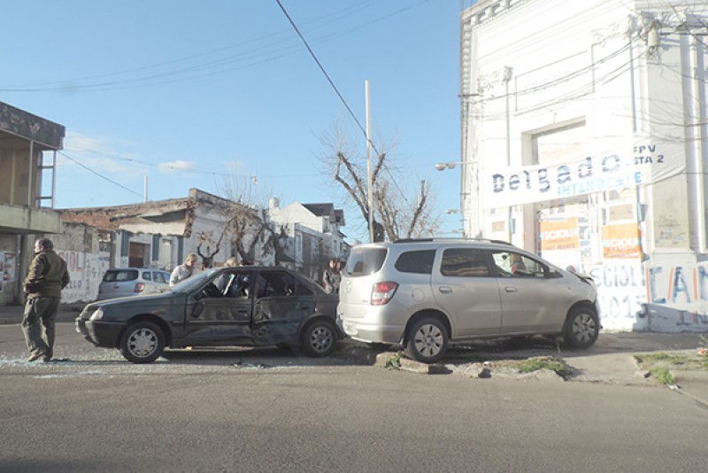 Dos vehículos -un Peugeot 405 y un Chevrolet Spin- al llegar a la céntrica esquina de Salta y Libertad impactaron entre sí con mucha violencia. Producto del choque, ambos rodados finalizaron sobre la vereda, uno en sentido contrario al que circulaba (por calle Salta).