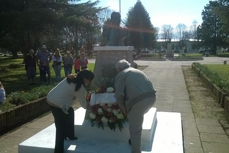 Posteriormente al minuto de silencio, se oficiaron las oraciones religiosas y se colocó una ofrenda floral en el busto del Gral. San Martín.
