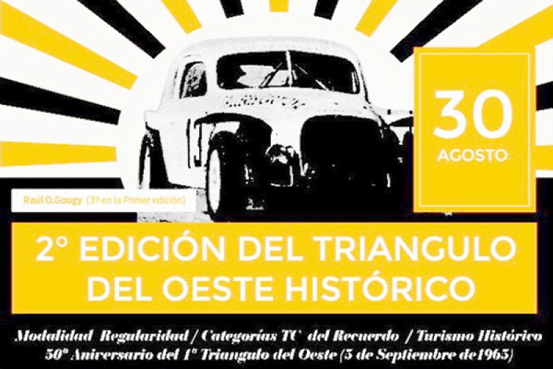 La segunda edición del Triángulo del Oeste Histórico -que fuera suspendida en su oportunidad por la reactivación del autódromo municipal y la situación hídrica de nuestra zona-, ha fijado su realización para el domingo 30 de agosto.