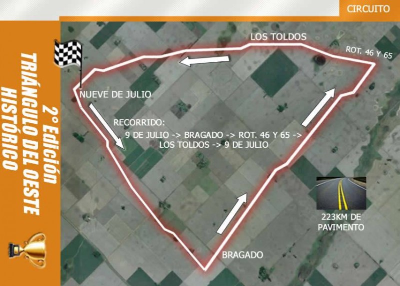 En esta oportunidad, la prueba tendrá como organizador a 9 de Julio, y rememorará los 50 años del primer Triángulo del Oeste, con largada en dicha localidad, pasando por Los Toldos.