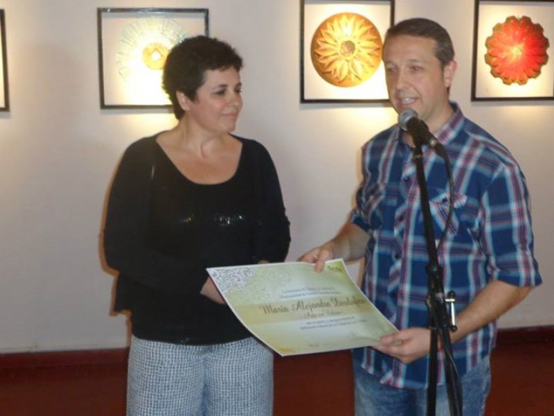 Es llevada adelante a través de una artista oriunda de nuestro pueblo, María Alejandra Deulofeu a quien invito a que me acompañe en esta presentación (aplausos). Esta iniciativa surgió a través de una idea de Augusto, un compañero de trabajo, quien indagando en las redes sociales, vió el trabajo de Alejandra, y hablamos para llevar a cabo esta muestra.