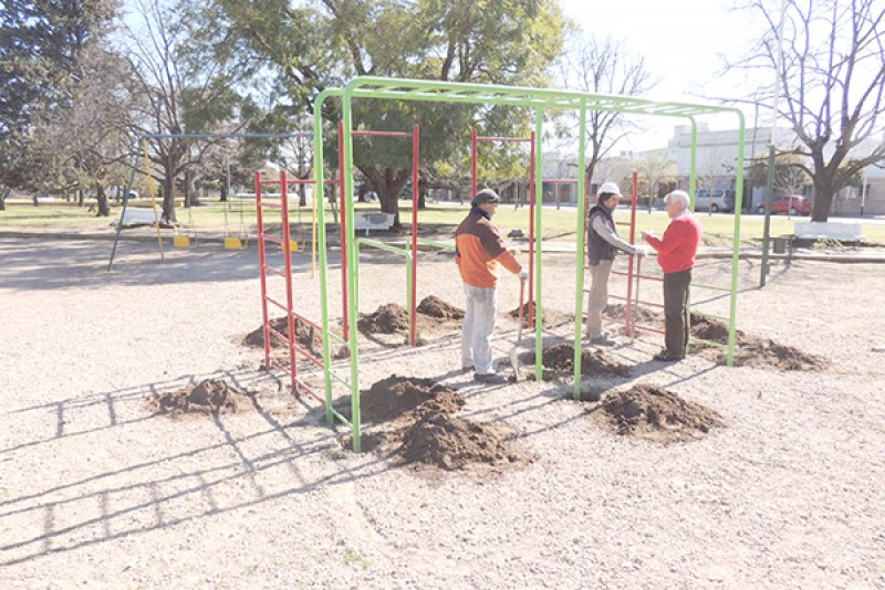 En primera instancia el jefe comunal visitó la Plaza Italia, donde un grupo de operarios se encuentra colocando nuevos juegos infantiles.