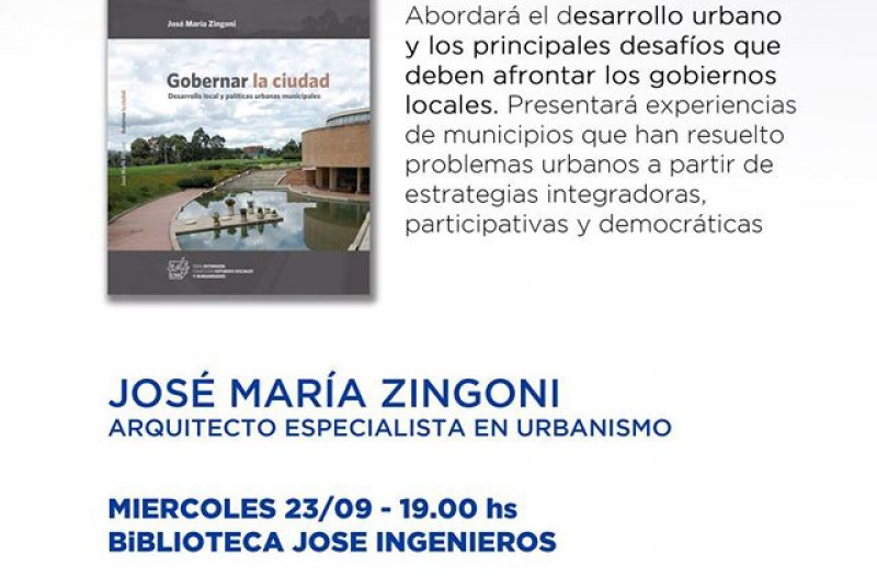 El Partido GEN de 9 de Julio invita a la comunidad en general a la charla abierta y presentación del libro “Gobernar la ciudad, Desarrollo local y políticas urbanas municipales” de José María Zingoni, arquitecto especialista en urbanismo.