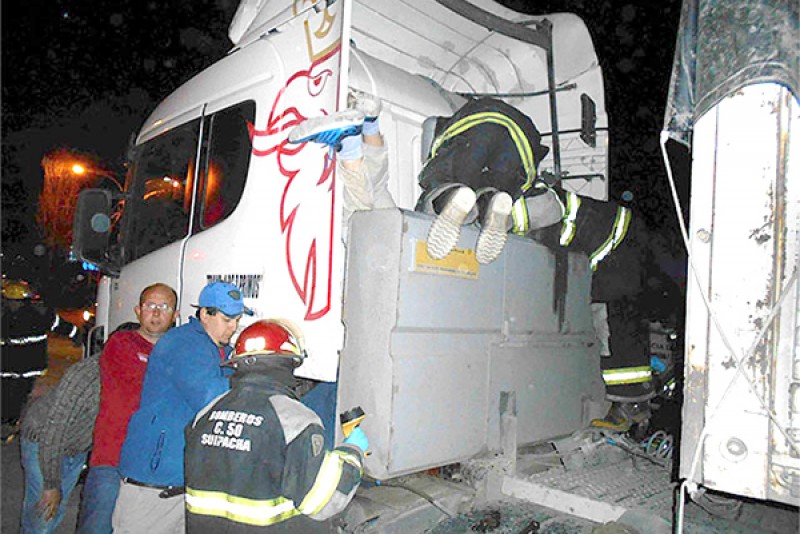El chofer del camión había levantado la cabina y se hallaba haciendo reparaciones en la parte motriz cuando inesperadamente la cabina del camión cayó pesadamente sobre su cuerpo atrapándole el brazo derecho con el cierre de la misma; ante los gritos de dolor del infortunado chofer , el personal de bomberos de Suipacha y varios choferes de otros camiones que se hallaban en el lugar lucharon denodadamente durante alrededor de 40 minutos utilizando todo tipo de herramientas para poder levantar la cabina y retirar a la víctima de la incómoda situación.