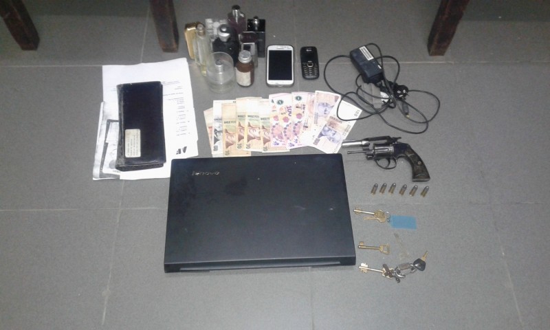 Por tales motivos, reconociendo que el rodado no resulta de este medio y el sujeto no tenia las características similares al morador de la finca en cuestión, previo solicitar colaboración a esta Policía Comunal, quienes junto a Dirección Distrital Investigaciones y Comando Prevención Rural de General Viamonte, ya en Ruta Provincial 65, en inmediaciones de la localidad de Baigorrita, se logra interceptar el vehículo y al momento de la aprehensión de los mismos se logra secuestrar un revolver calibre 38, dinero efectivo, una mochila con documentación, con efectos personales y una notebook.