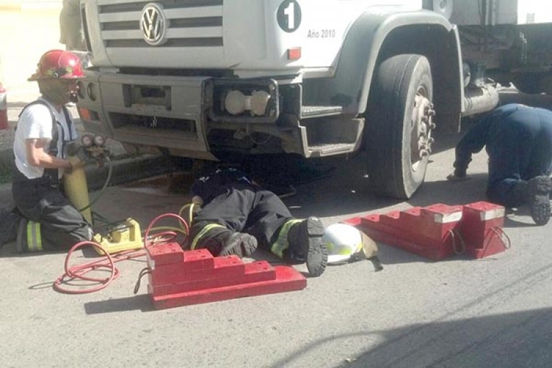 Sergio Fernández, del cuartel de Bomberos Voluntarios de 9 de Julio explicó a los periodistas en el lugar de los hecho que “recibido el llamado de los vecinos de la zona instantes después del accidente, llegamos inmediatamente e iniciamos un trabajo de rescate utilizando bolsas de aire comprimido y expansores hidráulicos para levantar el camión y liberar a este persona atrapada”.