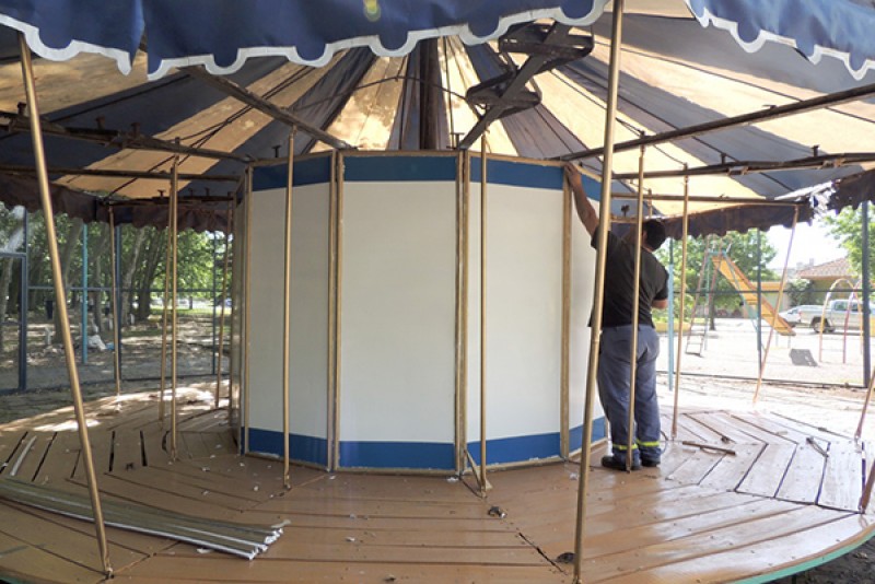 Finalmente, el jefe comunal también observó los trabajos de reacondicionamiento a nuevo que se efectúan en la calesita del Parque General San Martín, ubicada sobre el sector de juegos contiguo a la intersección de Avdas. Mitre y Tomás Cosentino.