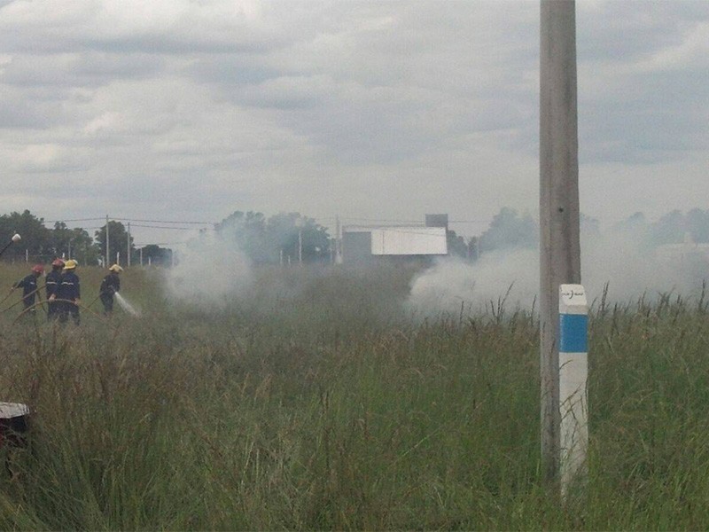 El fuego afectaba a un lote lindero a una empresa donde se encontraban varios camiones estacionados y el humo afectaba parcialmente el transito sobre la ruta antes mencionada.