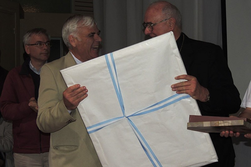 Asistió a la misma, acompañando a la máxima autoridad diocesana, el Intendente Municipal de 9 de Julio, Dr. Walter Battistella, quien al finalizar la ceremonia religiosa, en ocasión de un agasajo realizado en el patio del Colegio Jesús Sacramentado, procedió a efectuar la entrega de un presente que testimonia la gratitud hacia el desempeño de su misión pastoral.