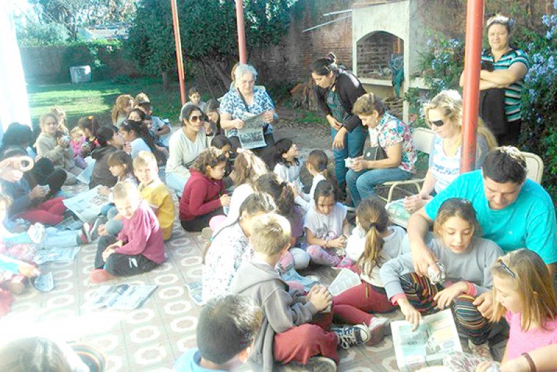 Actividad con los padres sobre párrafos del libro. (Construcción de foto)